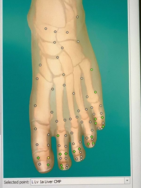 Meridian points are gently probed on the hands and feet with a non-invasive sensor to assess the state of your body’s health.